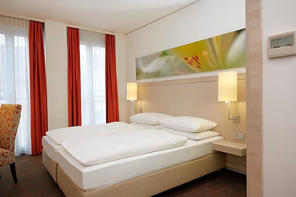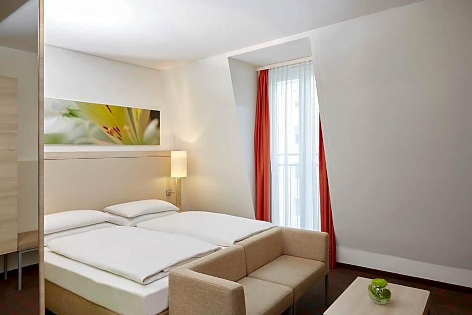 This comfort single room features a desk, a flat-screen TV with satellite channels and a private bathroom with shower and hairdryer. A bottle of mineral water is provided.